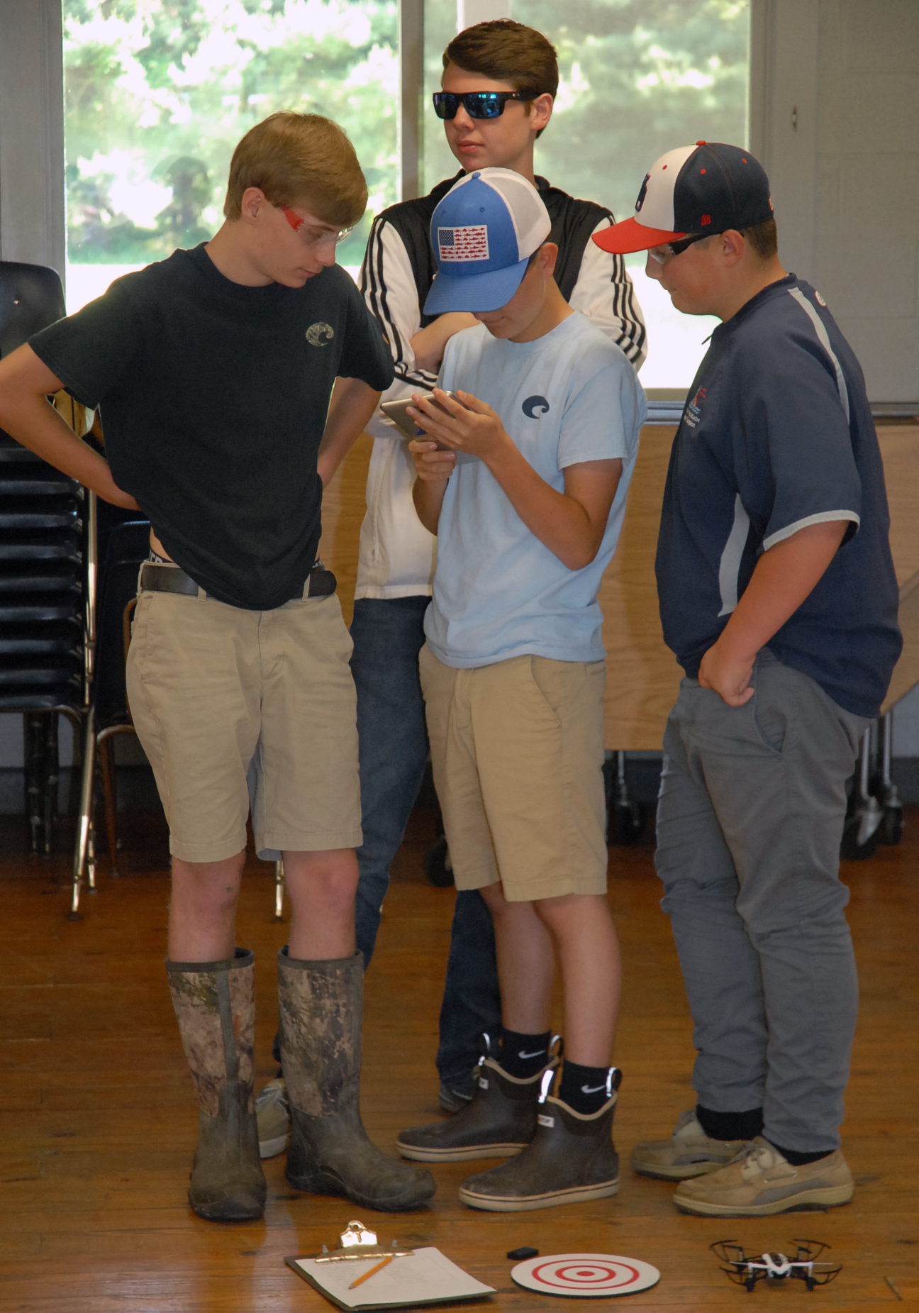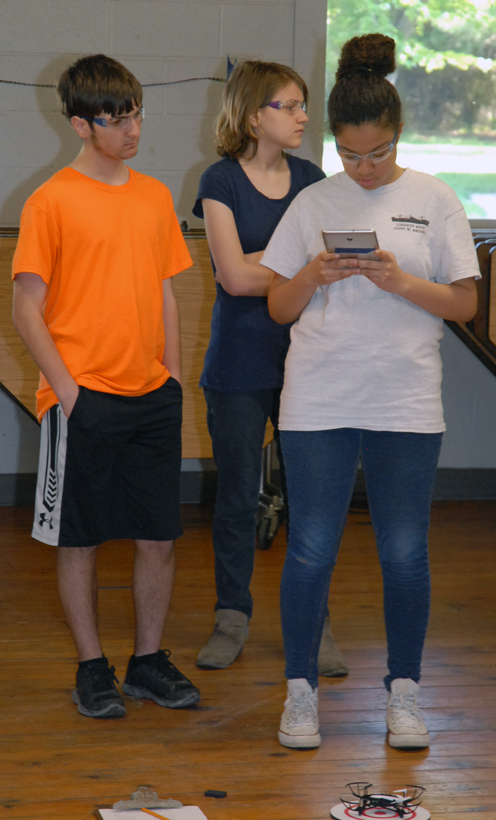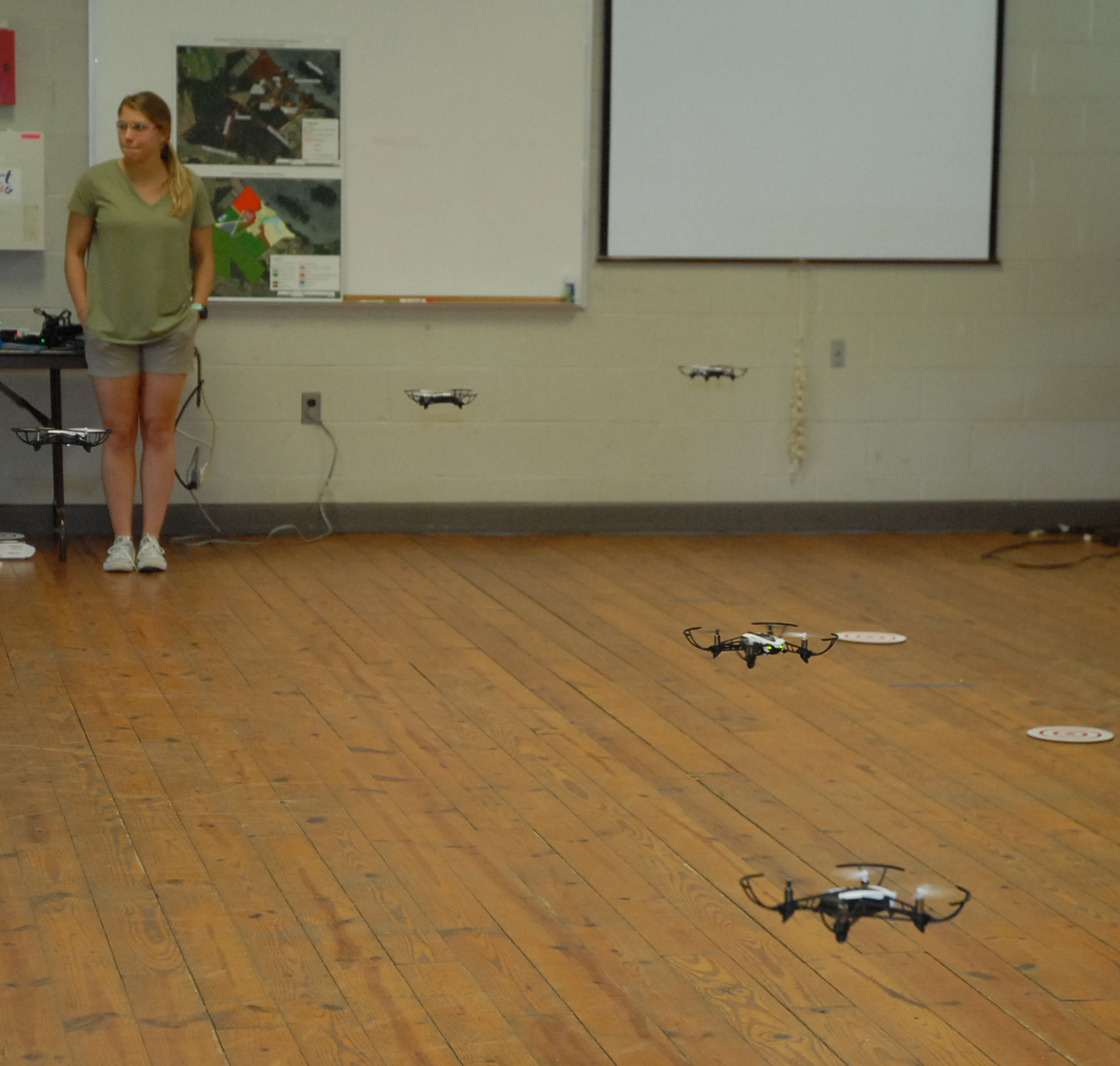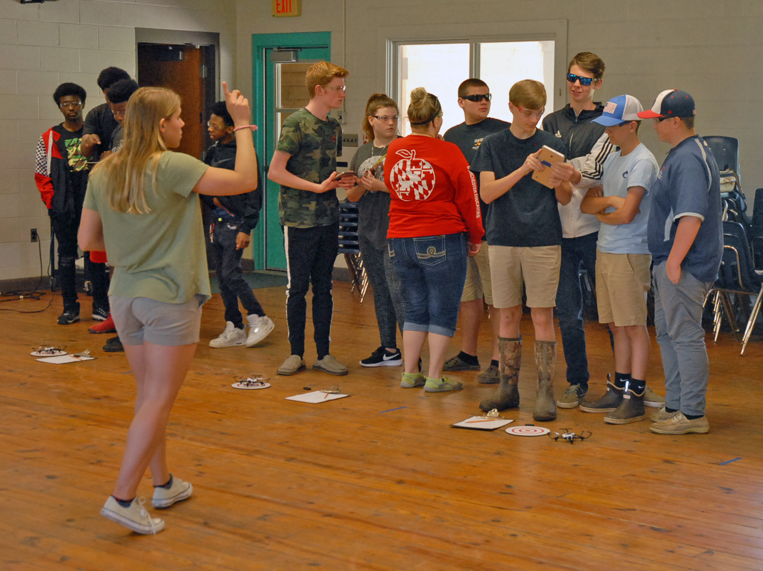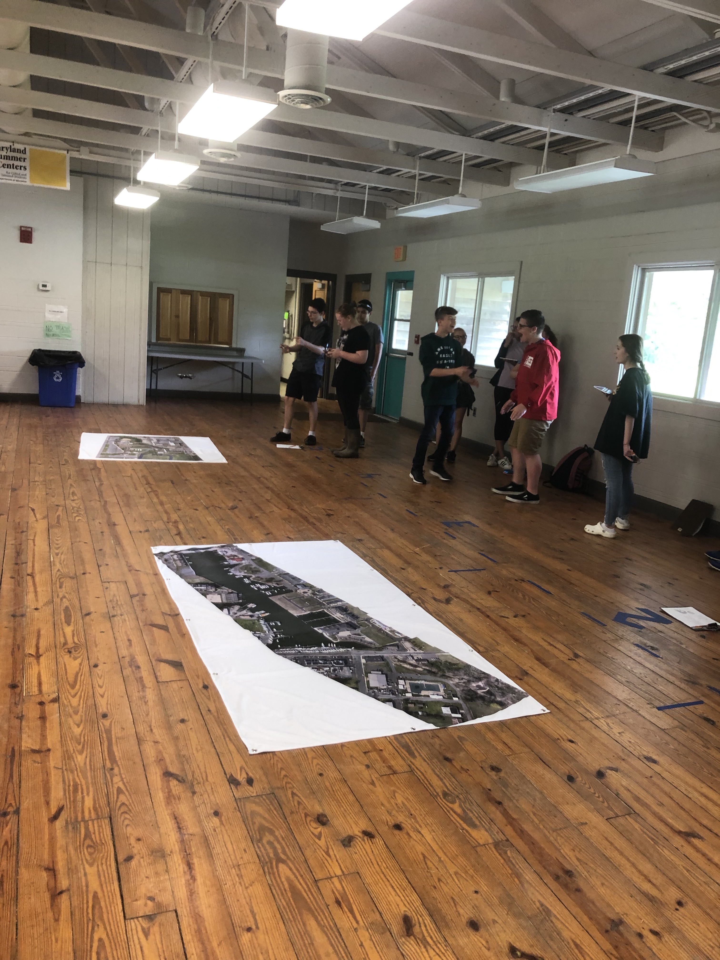 Students also learned about drone safety and FAA flying laws, using a safety checklist that one should always use when flying. Students were taught how to manually fly using flying controls: pitch, roll, throttle, yaw. We practiced drone operations during a fun and challenging game of Drone Simon Says. Students then learned how to code an autonomous flight to capture aerial images over enlarged maps of Cambridge Creek and North Dorchester High School. This information was used to identify physical, biological, and chemical threats to local water quality. This activity provided students a new perspective and technique for identifying key water quality issues which will be implemented in meaningful action projects.